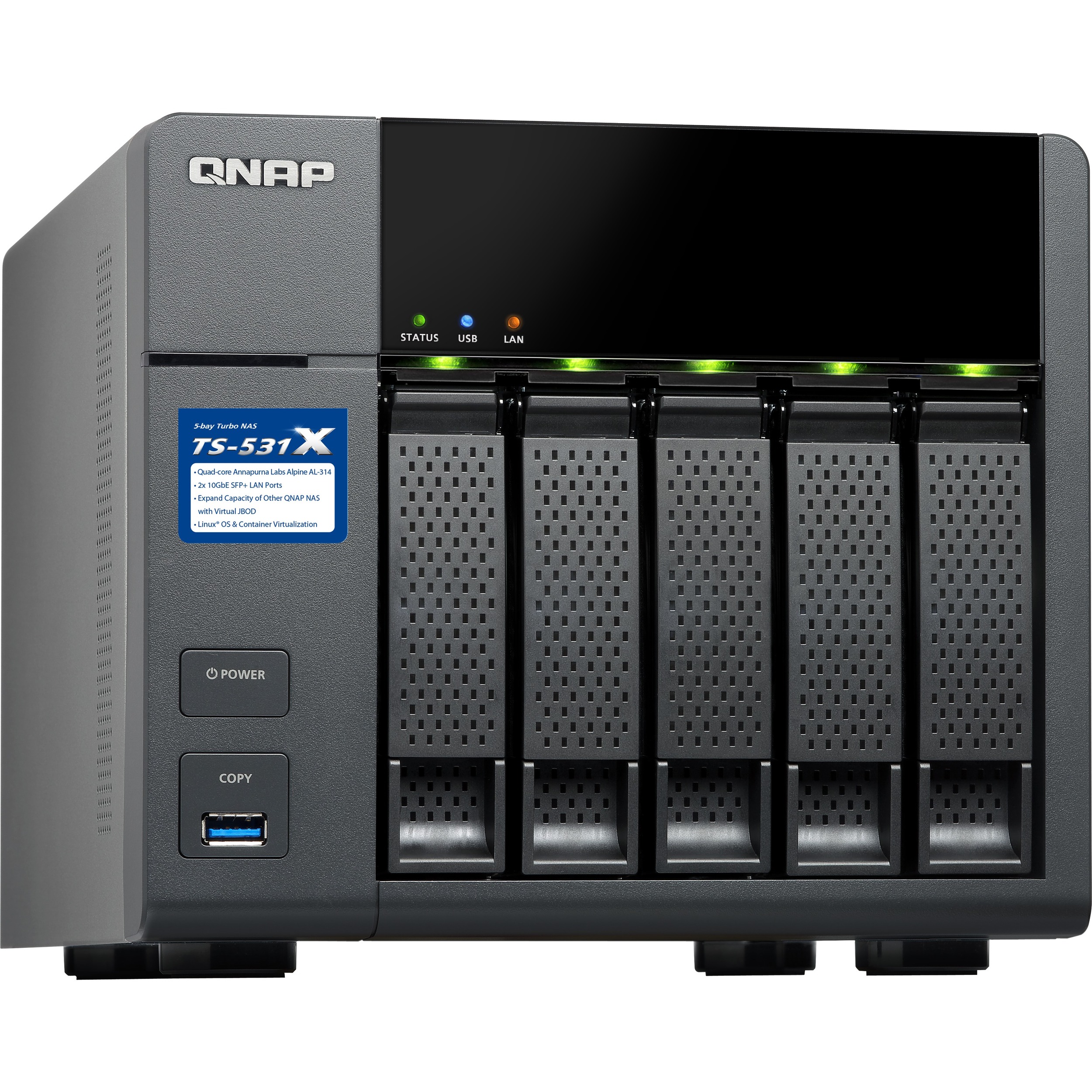 QNAP Turbo NAS TS531X 5 x Total Bays SAN/NAS Storage System Tower from www.novatech.co.uk